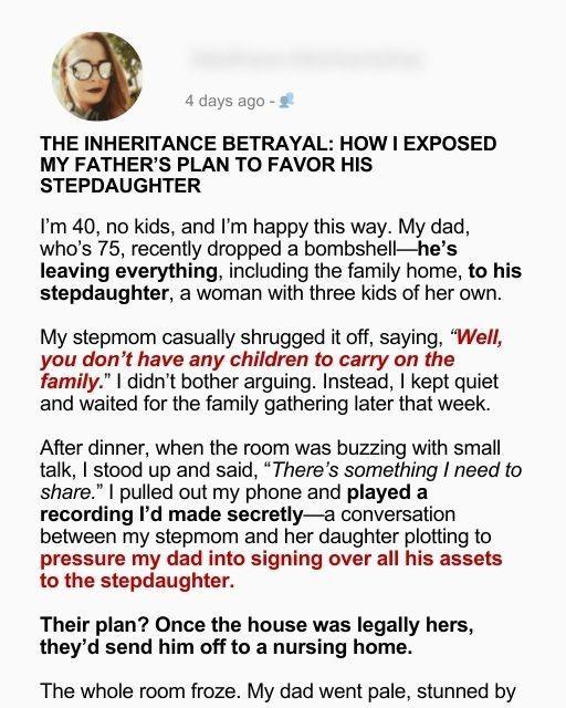 The Inheritance Betrayal: How I Exposed My Father’s Plan To Favor His Stepdaughter